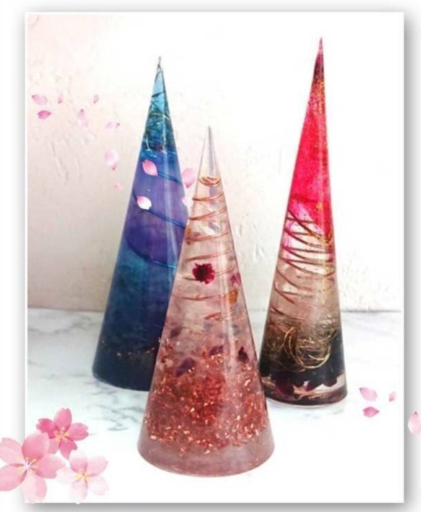 〈ネガティブエネルギーをポジティブエネルギーへ変換〉〈マイナスイオン〉〈電磁波カット〉などなど嬉しい効果がたくさんあるオルゴナイトを作ってみませんか?インテリアとしてお使いいただける大きな円錐形をお作りいただきます!!